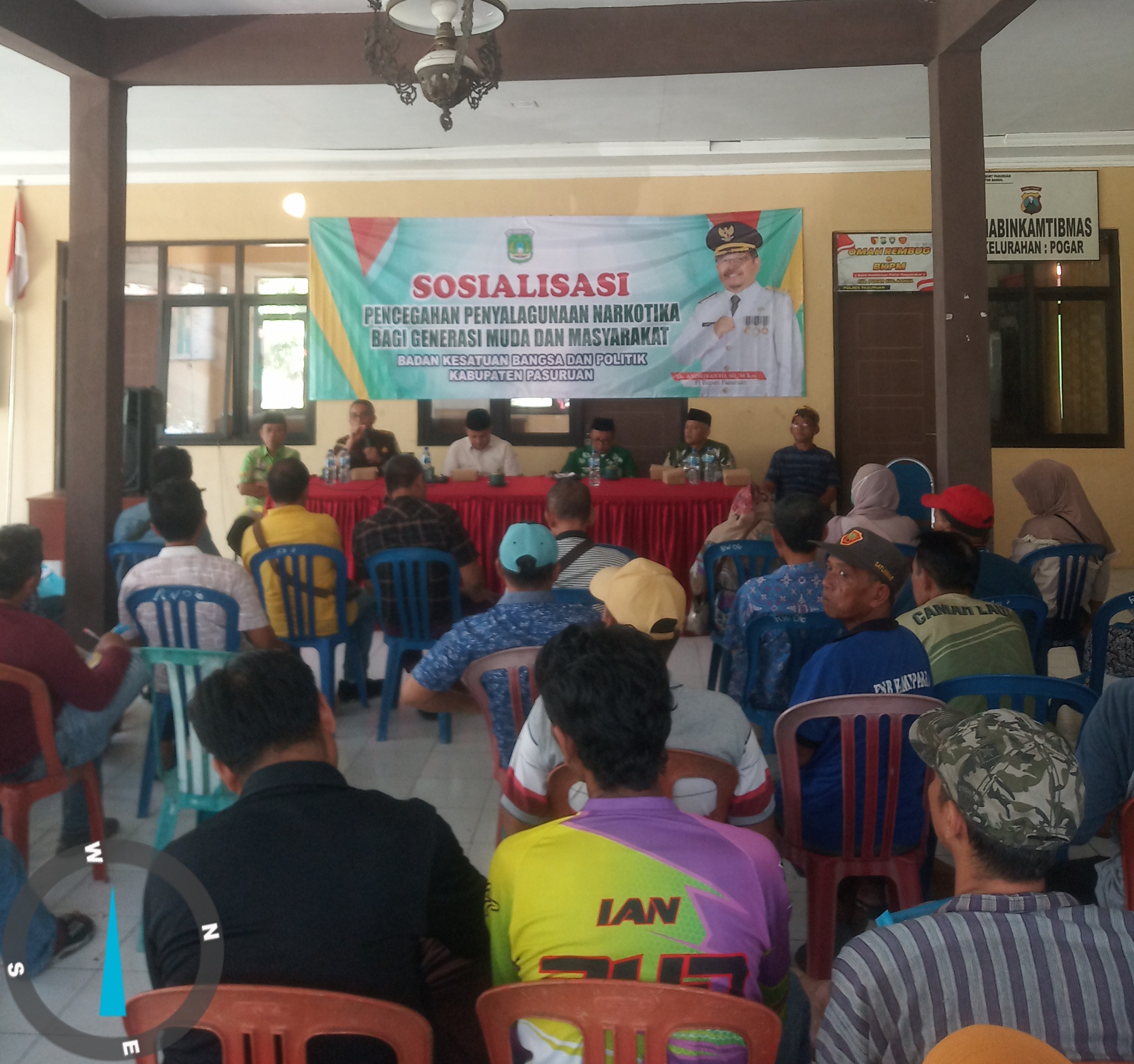 Pasuruan meri.co.id – Badan Kesatuan Bangsa dan Politik (Bakesbangpol) Kabupaten Pasuruan mengadakan sosialisasi pencegahan penyalahgunaan narkotika bagi generasi muda dan masyarakat. Kegiatan ini berlangsung di Kelurahan Pogar, Kecamatan Bangil dengan peserta yang berasal dari Karang Taruna, RT, RW, tokoh pemuda, dan masyarakat setempat.