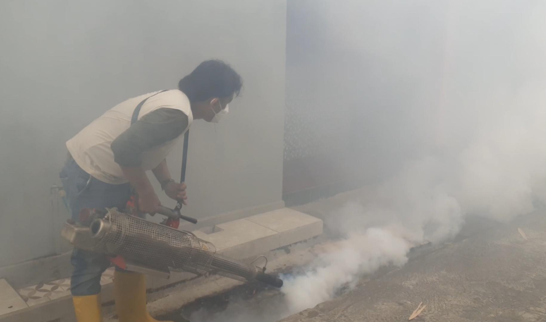Kegiatan ini menyasar rumah-rumah warga dan gorong-gorong di sekitar empat anak yang sebelumnya positif DBD, agar nyamuk Aedes Aegypti pembawa virus dengeu tersebut mati akibat asap pestisida.