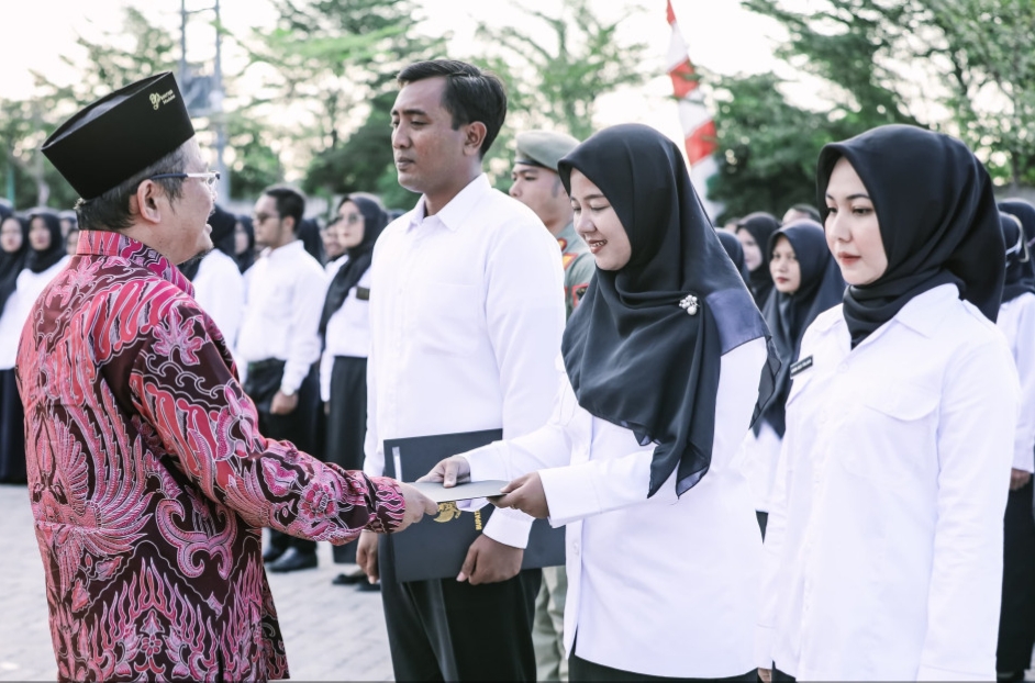 Pasuruan, Meri.co.id – Sebanyak 1582 guru menerima Surat Keputusan Pegawai Pemerintah dengan Perjanjian Kerja (PPPK) untuk jabatan fungsional guru dalam sebuah acara yang berlangsung di Graha Maslahat, Kabupaten Pasuruan, Jumat (28/6). Acara tersebut dihadiri oleh PJ Bupati Kabupaten Pasuruan, Andriyanto yang memberikan pidato penuh motivasi dan arahan bagi para penerima SK.