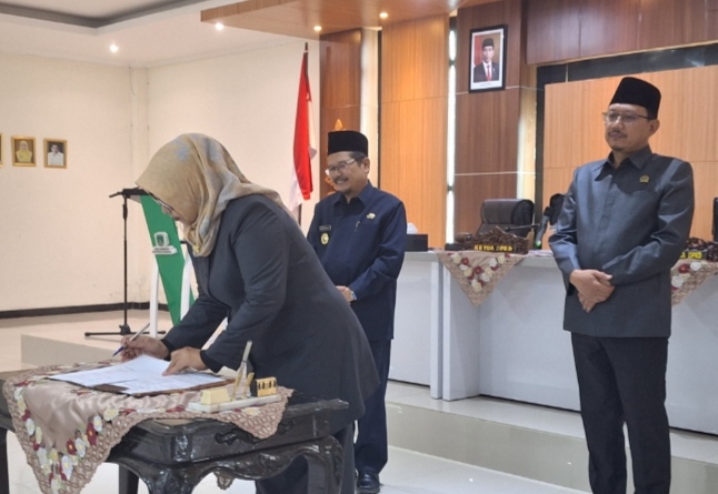 Pengesahan Raperda tersebut ditandai penandatanganan berita acara serta penyerahan berita acara oleh Ketua DPRD Kabupaten Pasuruan, Sudiono Fauzan kepada Pj Bupati Pasuruan, Andriyanto dalam Sidang Paripurna di Gedung DPRD Kabupaten Pasuruan, Senin (22/7/2024) siang.