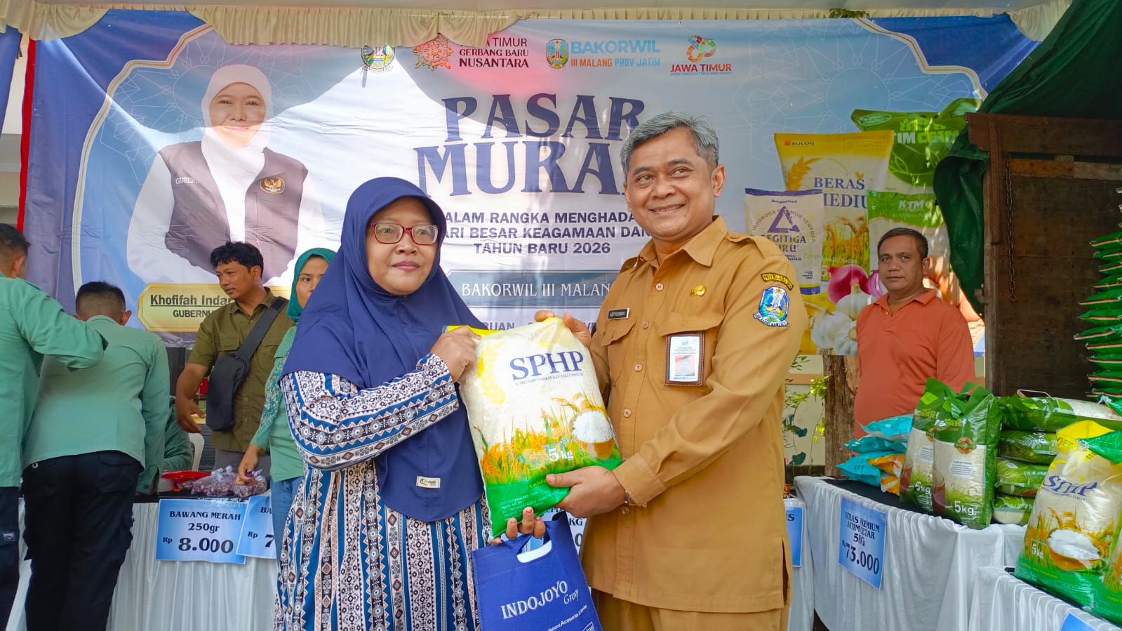 Kepala Bakorwil lll Malang Asep Kusdinar menyampaikan kegiatan ini merupakan program dari Pemprov Jatim dalam menekan inflasi, dimana dengan pasar murah sembako merupakan salah cara yang efektif menekan harga kebutuhan.
