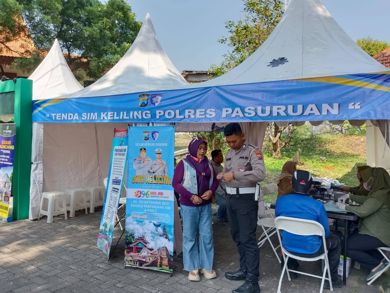 Pasuruan, meri.co.id – Satlantas Polres Pasuruan dalam menyemarakkan hari jadi Kabupaten Pasuruan ke-1096 yang digelar di Taman Candra Wilwatikta Pandaan, selama lima hari mulai 24-30 September membuka layanan unggulan berupa perpanjangan SIM.